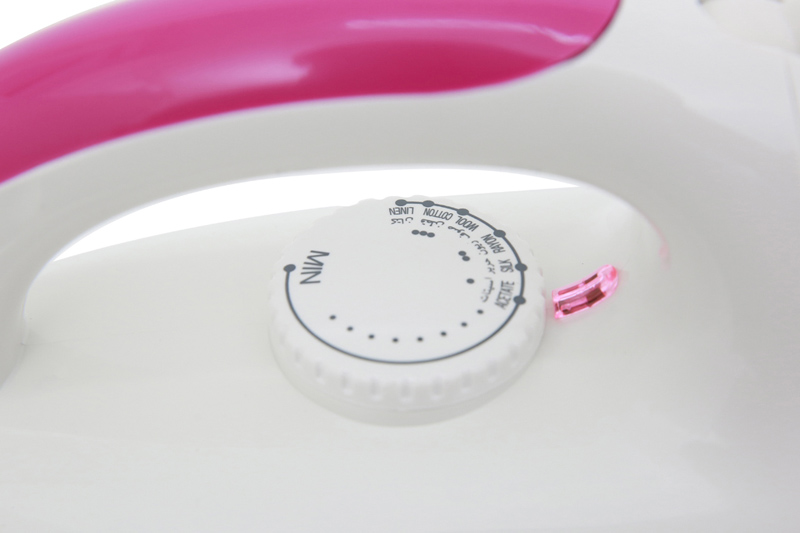 Bàn ủi khô có công suất 1000W tiết kiệm điện, điều khiển nhiệt độ bằng núm vặn có hiển thị mức nhiệt với từng chất liệu vải