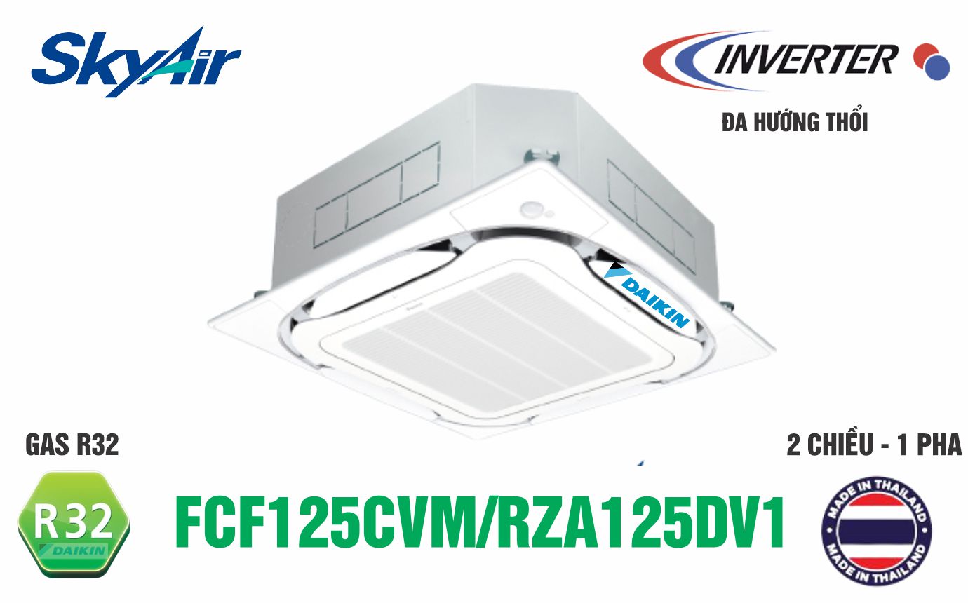 Điều Hòa Âm Trần Cassette Daikin Inverter 2 Chiều 42.700 BTU (FCF125CVM/RZA125DV1) chính hãng