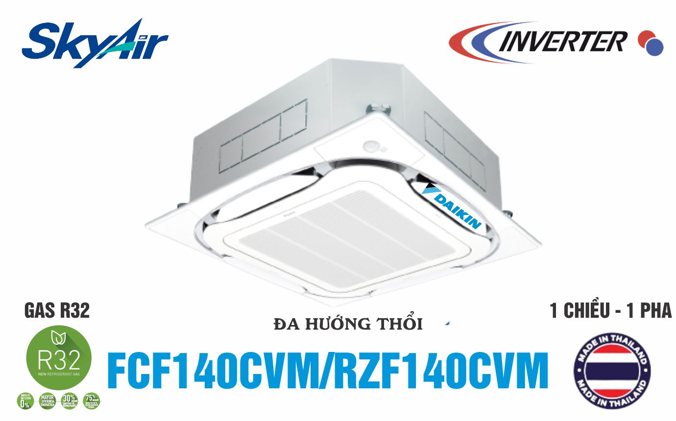 - Máy điều hòa âm trần Daikin FCF140CVM/RZF140CVM 1 chiều công suất suất 50000BTU (5.5HP) công nghệ inverter tiết kiệm điện, sử dụng nguồn điện 1 pha, gas R32 hiệu suất làm lạnh cao, thân thiện với môi trường được sản xuất nhập khẩu chính hãng Thái Lan.