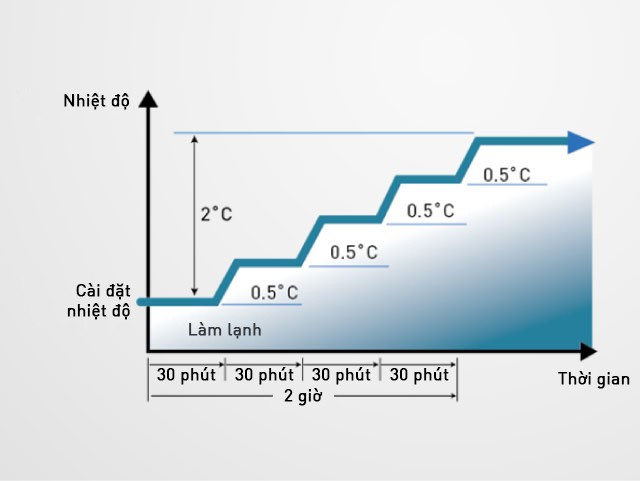 Tiết kiệm đến 20%* năng lượng. Máy điều hòa không khí xác định điều kiện ổn định và điều chỉnh vừa phải nhiệt độ cài đặt theo từng 0,5 độ để tiết kiệm năng lượng khi vận hành máy (tối đa 2 độ).
