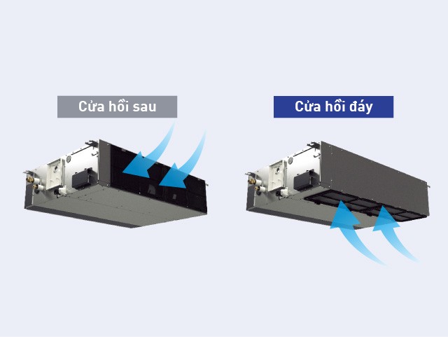 Ngoài ra, vị trí cửa hút gió của máy lạnh có thể điều chỉnh thông qua bảng điều khiển có thể tháo rời để cho phép sử dụng cả cửa phía sau hoặc phía đáy, tùy thuộc vào việc lắp đặt ống dẫn.