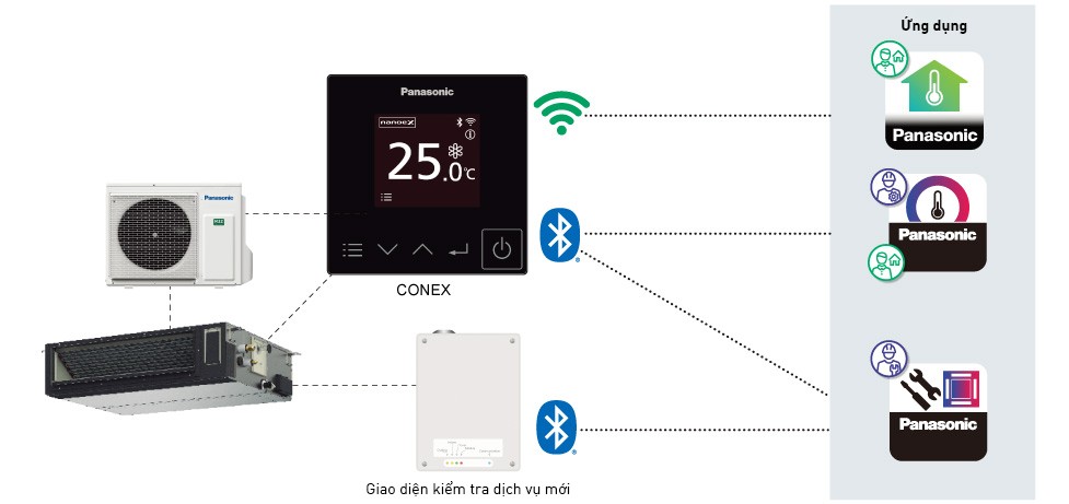 Với Wi-Fi tích hợp và Ứng dụng Panasonic Comfort Cloud, kết nối tối đa 20 máy điều hòa không khí tại 1 địa điểm (tối đa 10 địa điểm), truy cập từ xa tất cả các tính năng điều hòa không khí, theo dõi và giám sát việc sử dụng các máy điều hòa không khí bằng cách sử dụng chức năng thống kê năng lượng toàn diện và xác định các vấn đề bằng thông báo lỗi để khắc phục sự cố dễ dàng, tất cả chỉ từ một thiết bị di động.