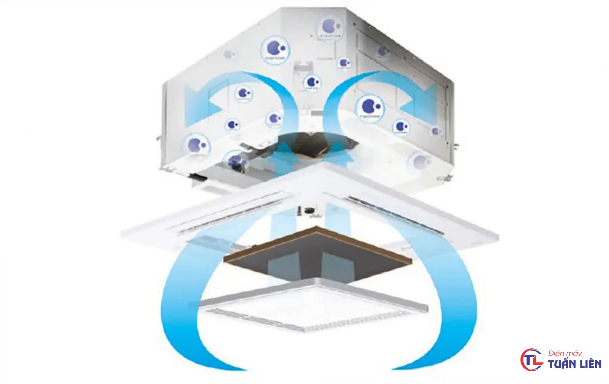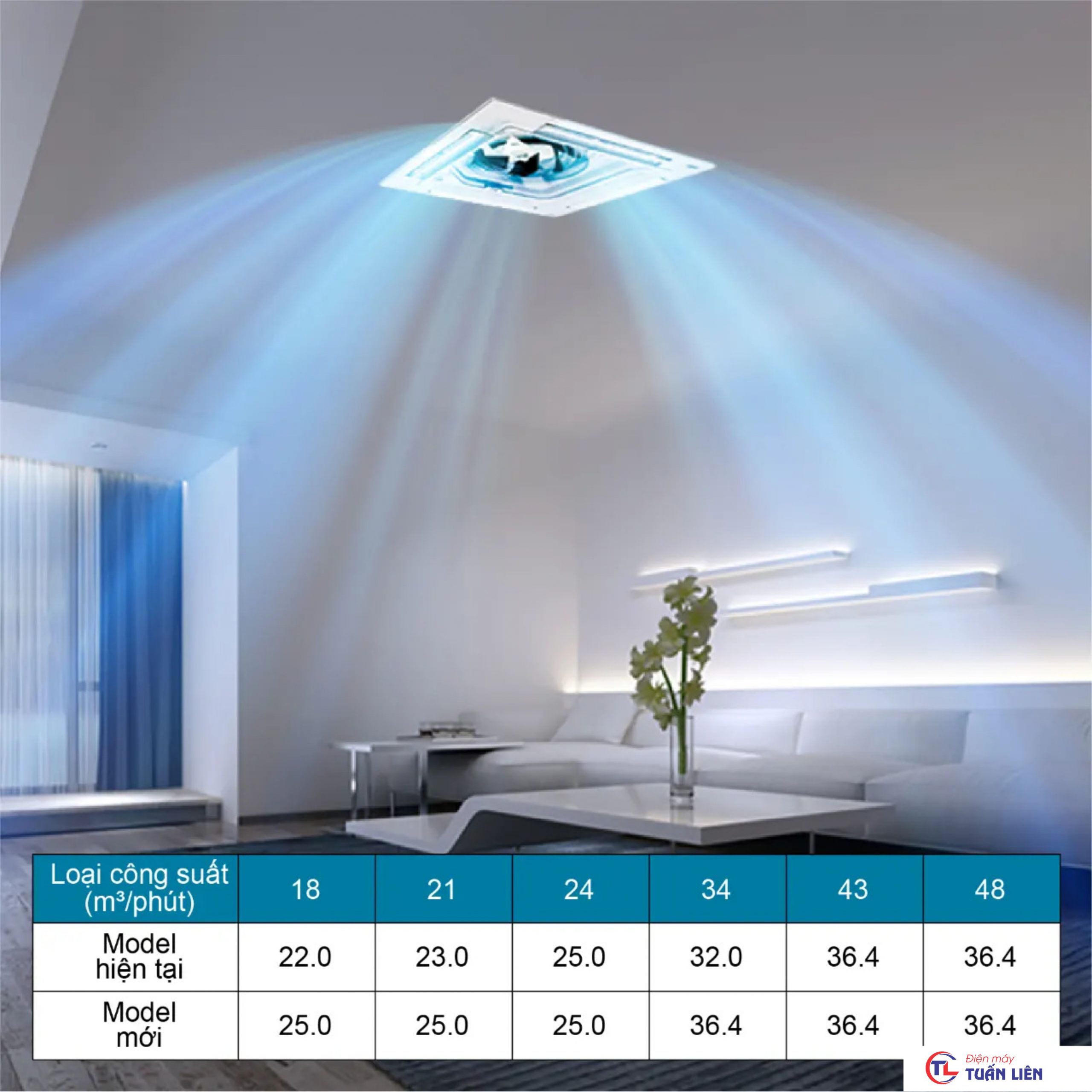 Bên cạnh đó, cánh đảo gió được cải tiến rộng 532mm giúp luồng gió thổi từ trung tâm ra 4 cửa gió, tỏa đều 360 độ, tạo ra luồng gió dễ chịu, thổi đi xa hơn, phân bố đều khắp không gian phòng.
