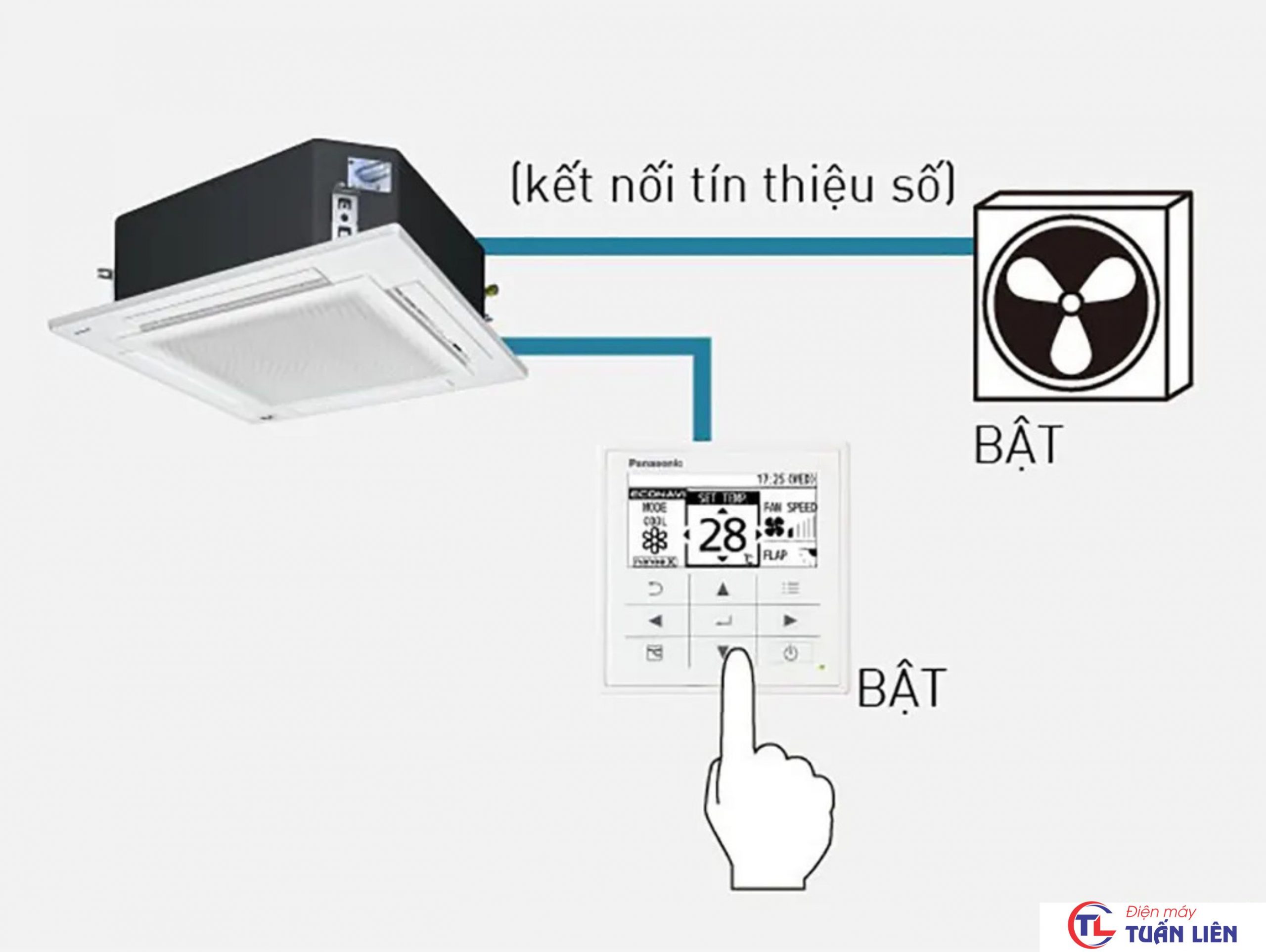 - Sau khi kết nối với dàn lạnh, bạn có thể điều khiển quạt thông gió (bán riêng).