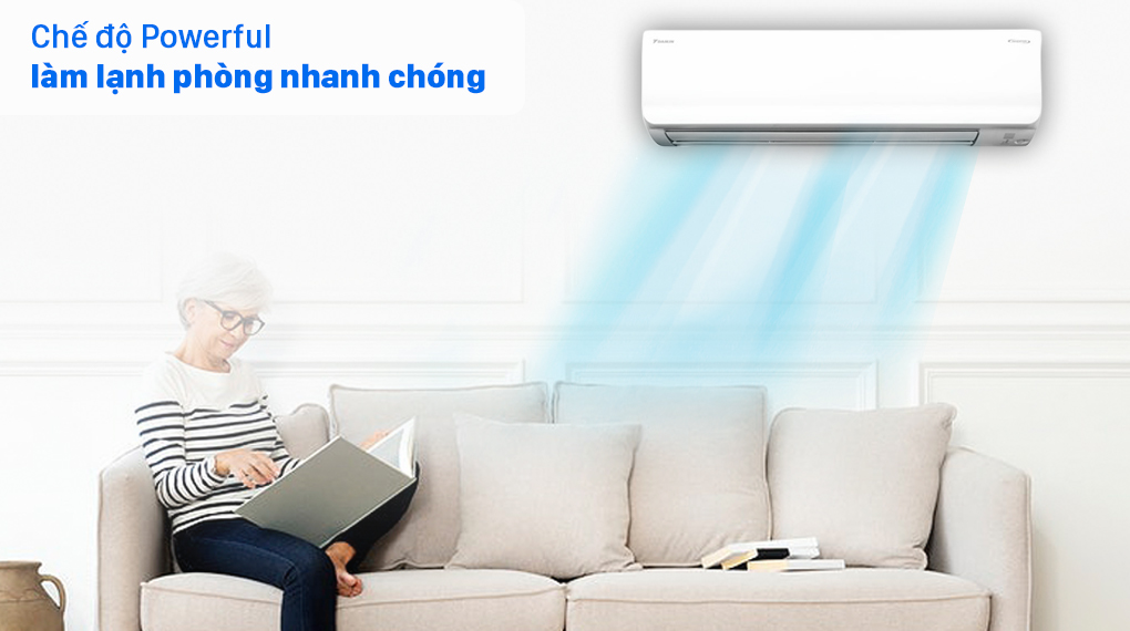 Thay vì phải chờ đợi máy khởi động và làm lạnh lâu gây khó chịu, bạn chỉ cần kích hoạt chế độ Powerful là có thể nhanh chóng tận hưởng những làn gió mát lạnh và sảng khoái nhờ có hệ thống máy nén hoạt động ở công suất cao