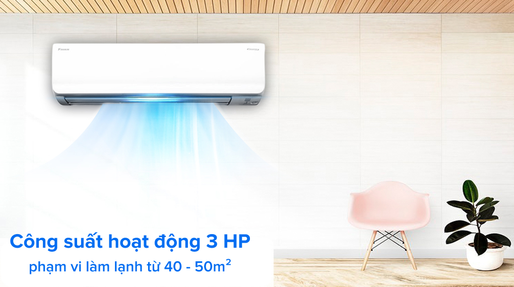 Công suất 3 HP, làm lạnh hiệu quả trong phạm vi từ 40 đến 50 m2