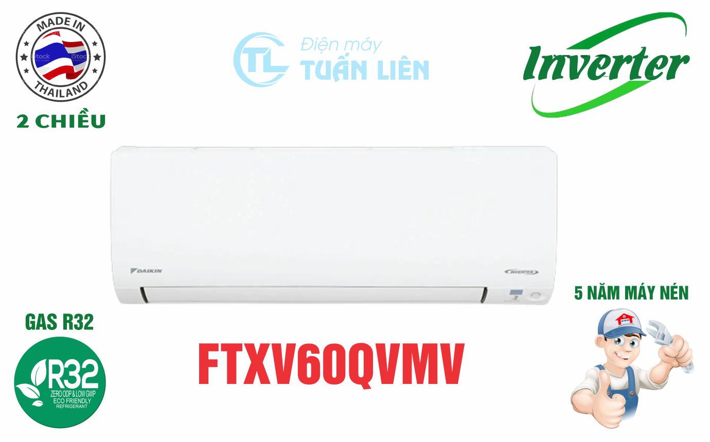 Máy điều hòa Daikin FTXV60QVMV/RXV60QVMV công nghệ inverter 2 chiều (làm lạnh / sưởi ấm) mang lại cảm giác sảng khoái mát lạnh mùa hè và ấm áp vào mùa đông phù hợp lắp đặt cho phòng có diện tích < 40m2.