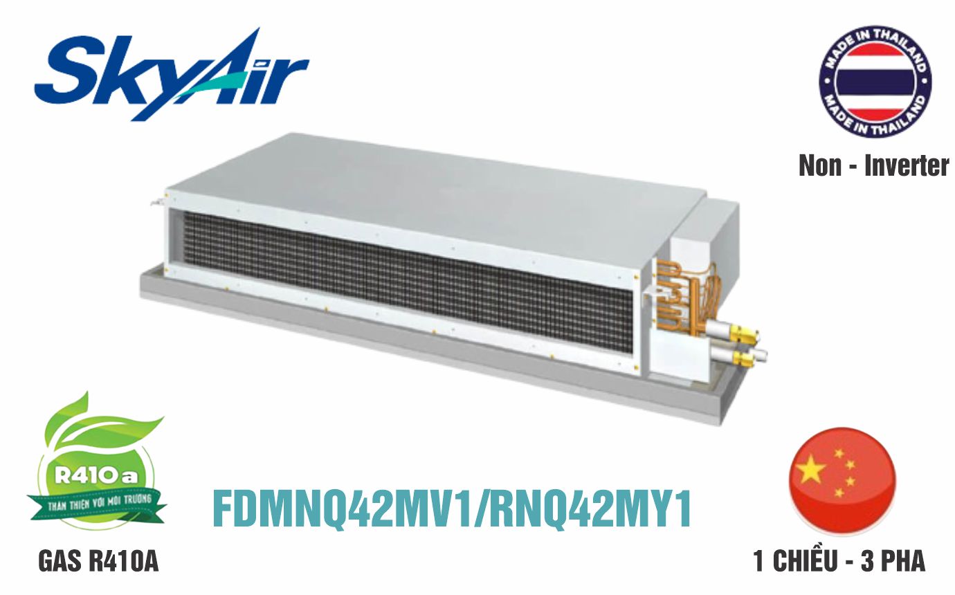 • Điều hòa nối ống gió 1 chiều 42.000BTU (FDMNQ42MV1/RNQ42MY1)  thuộc dòng điều hòa thương mại được sản xuất tại Thái Lan trên dây chuyền hiện đại tiến tiến của Nhật Bản.