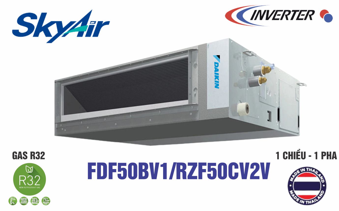 - Điều hòa nối ống gió inverter 1 chiều 17.100BTU (FDF50BV1/RZF50CV2V) điều khiển dây (BRC1E63) thuộc dòng điều hòa thương mại được sản xuất tại Thái Lan trên dây chuyền hiện đại tiến tiến của Nhật Bản.