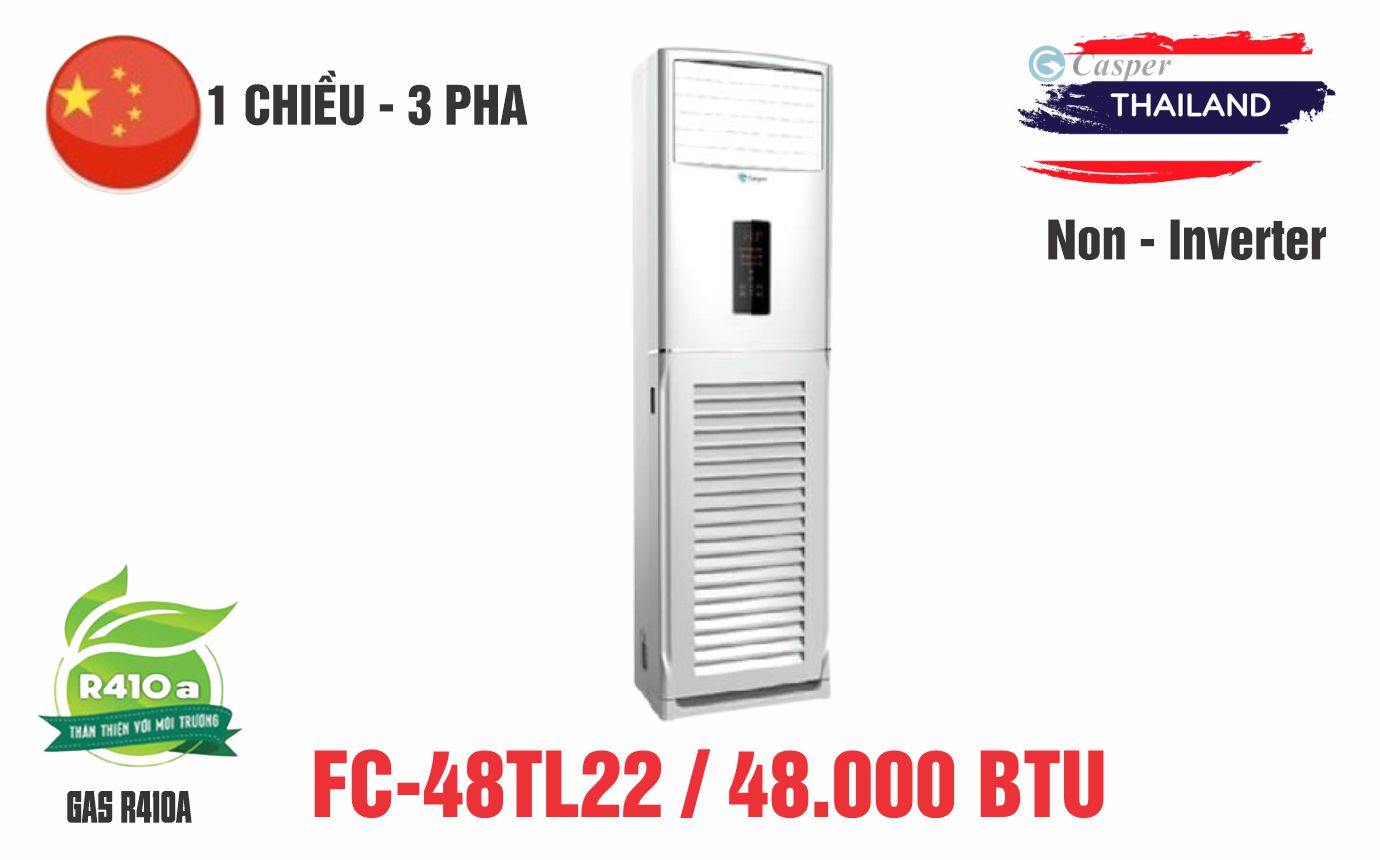 Điều hòa tủ đứng Casper 48000BTU FC-48TL22 1 chiều sử dụng gas R410a được sản xuất và nhập khẩu nguyên chiếc từ Thái Lan với nhiều ưu điểm vượt trội mang đến cho người tiêu dùng.