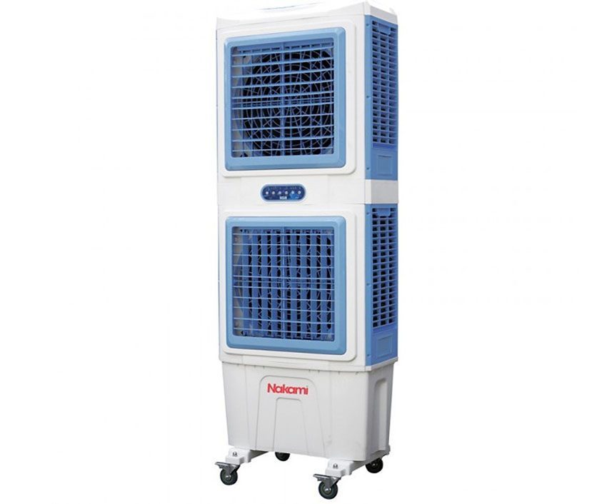 Máy làm mát Nakami NKA-10000A được thiết kế với 2 tầng quạt giúp không khí phân phối đều hơn và xa hơn, với lưu lượng gió 10000m3/h và thể tích bình chứa nước 55 lít nên thiết bị thích hợp dùng cho không gian đông người như nhà hàng, quán ăn, quán cafe, hội trường, công sở… Máy làm máy không khí này còn đảm bảo an toàn cho người dùng với thiết bị chống giật, hẹn giờ tắt máy cùng với chức năng làm mát không khí bằng hơi nước, lọc sạch bụi bẩn, tạo ion và cân bằng độ ẩm giúp cho không gian sống của gia đình bạn được tiện nghi hơn.