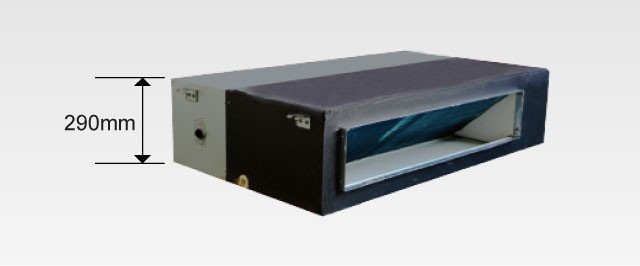– Thiết kế dàn lạnh thanh mảnh chỉ 290mm, phù hợp cho các cơ sở có trần kín hoặc trần giả như các trung tâm thương mại.