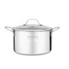 Nồi inox sáng bóng, kiểu dáng đơn giản, sang trọng, đường kính viền 26 cm thích hợp nấu ăn cho gia đình 5 – 7 người ăn
