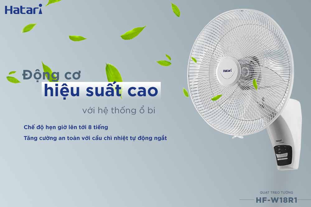 Quạt treo tường Hatari W18R1 có điều khiển từ xa chính hãng Thái Lan, chất lượng tốt, độ bền cao, sải cánh rộng 18 inch, tản gió mạnh, làm mát cực nhanh, sử dụng động cơ bạc đạn, vận hành bền bỉ, êm ái, không gây tiếng ồn.