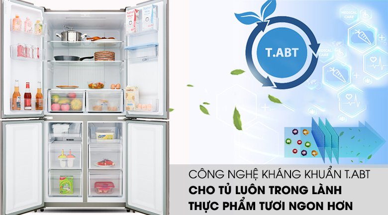 Tủ lạnh Inverter này trang bị công nghệ T.ABT với chức năng khử mùi, diệt khuẩn, ngăn chặn nấm mốc và các mầm mống từ vi khuẩn giúp môi trường trong tủ trong lành và giữ cho thực phẩm luôn tươi ngon.