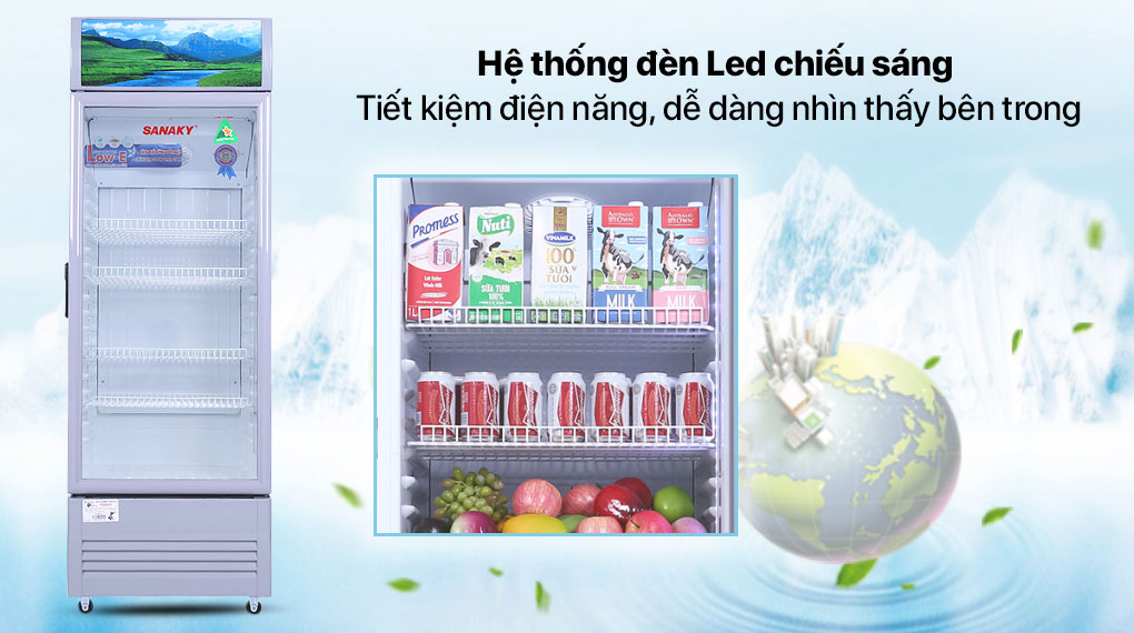 Tủ mát Sanaky 290 lít TM.VH358KL được thiết kế với hệ thống đèn LED dọc theo hông và nóc tủ, chiếu sáng toàn bộ các góc khuất giúp trưng bày các sản phẩm bắt mắt và thu hút.
